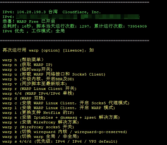一键为IPV6服务器添加IPv4网络(cf-warp)